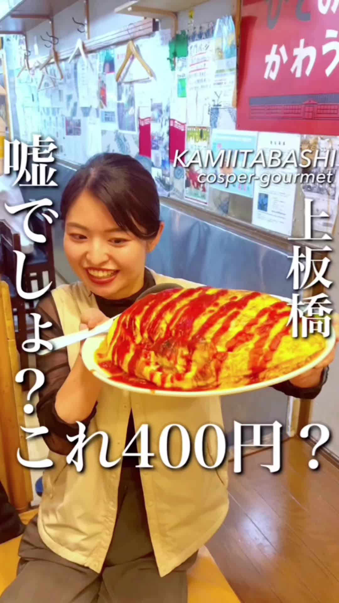 東京・板橋区上板橋の花門は、全品400円の超メガ盛りメニューが自慢です。オムライスや唐揚げなどを大盛りでご提供。持ち帰り用タッパーは無料で、予約を推奨するアットホームなお店です。