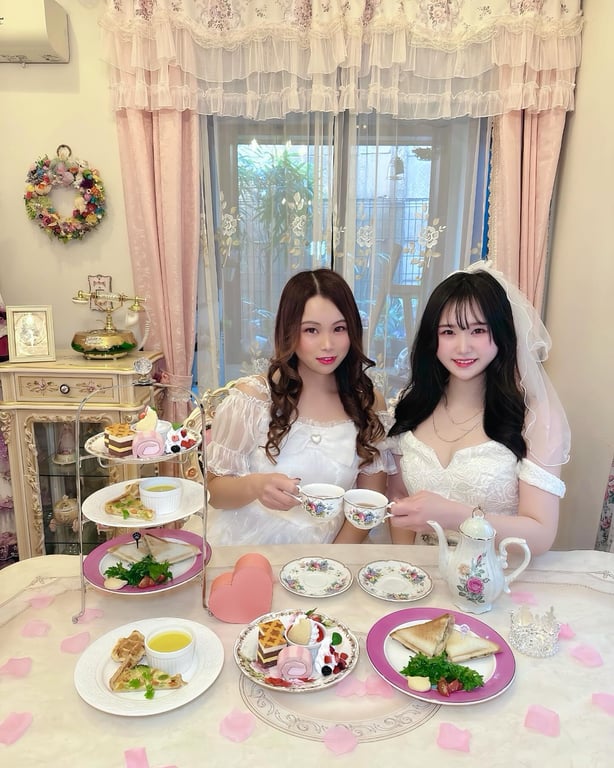神楽坂のアンティークな邸宅レストラン『シャブラン神楽坂』では、執事がお出迎えし部屋まで案内してくれる体験が特徴です。完全個室はローズ・クラウン・サムシングブルーの3種で、ローズ室は白とピンクの可愛い空間です。おすすめは主人のアフタヌーンティー3,600円で、90分の入れ替え制です。