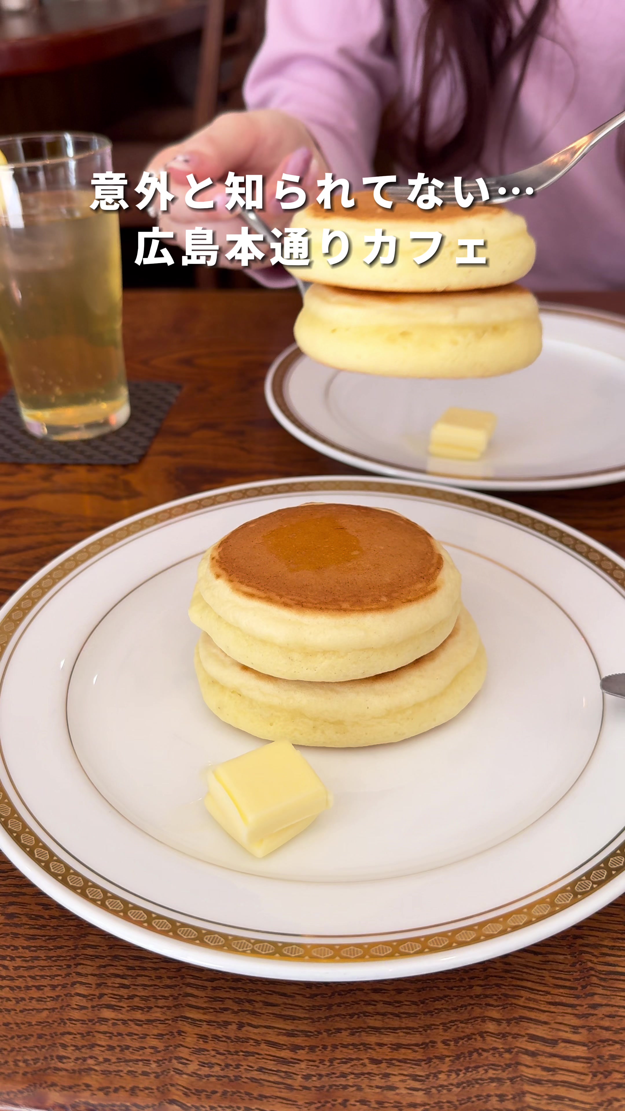 広島・本通りにある『Cafe classic』さん。ホットケーキは王道のバターとシロップがけはたまら...