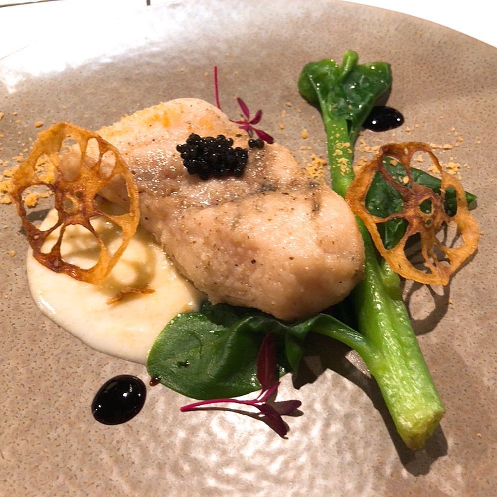 #チョウザメ の #ムニエル #キャビア 乗せ😋