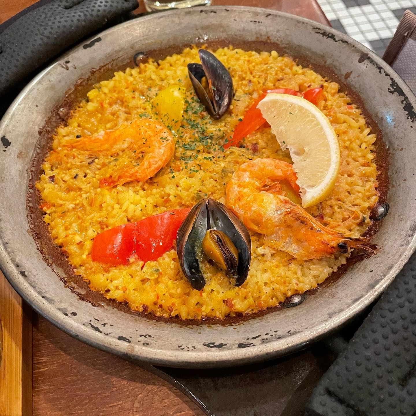 舞浜イクスピアリの入口にあるスペインバル『バル・リカ・セルヴェッサ』です。タパスやピンチョス、ムール貝の白ワイン蒸し、パエリアなど多彩なスペイン料理を楽しめます。ハッピーアワーは平日11時〜17時、土日祝は15時〜17時で、ビール・ワインが税込429円とお得です。